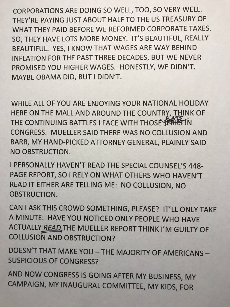 Trump’s July 4th Speech: We’ve Got It and…Oy