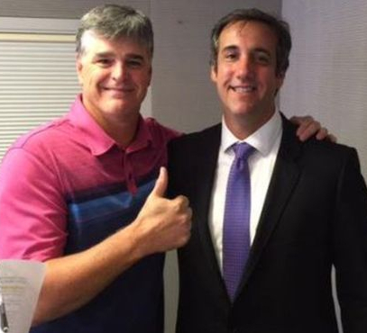 Sean Hannity, like Kavanaugh not really a favored Trump pick for extradition, but it’s argued he could be an effective distributor of disinformation to the Iranians as he is to US audiences of his horrible radio and television programs. Seen here with his consigliore, Michael Cohen, who’s indisposed the next few years.