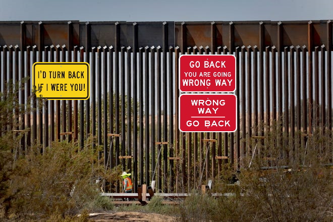 “We think this provides a window of opportunity to save a lot of money and make the wall look much more interesting than simply slathering it with black paint. We’ve got plenty of home-grown talent to help us spruce it up and add some informative elements to it to help the refugees on their way,” he said.
