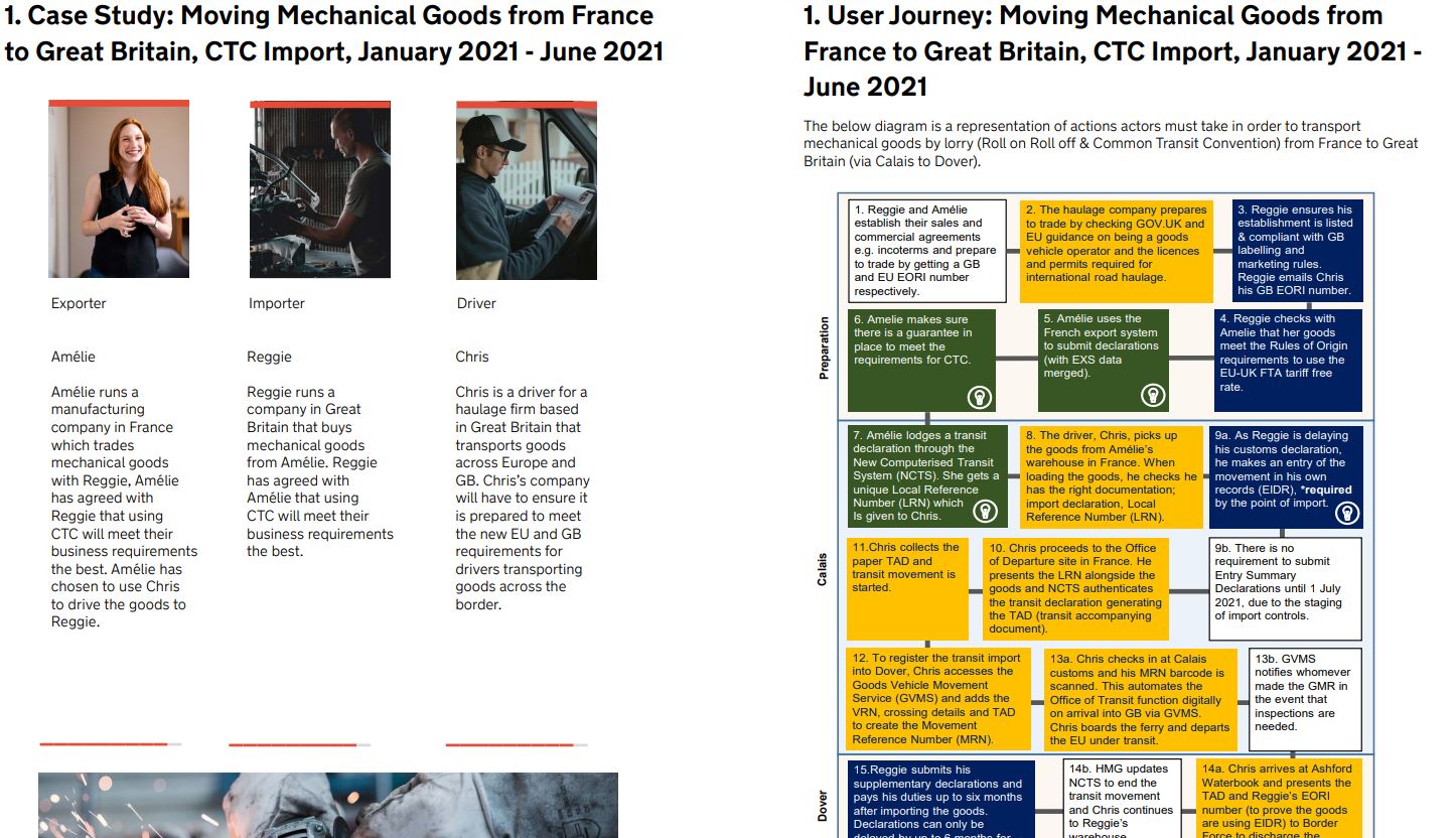 REPRESENTING THE FINEST IN CONTEMPORARY EXPLANATORY DOCUMENTATION, THESE EXAMPLES ARE BUT TWO OF THE DOZENS OF COLORFUL YET INFORMATIVE “CASE STUDIES” PRODUCED BY THE JOHNSON GOVERNMENT TO AID BRITISH COMMERCE NAVIGATE THE POST-BREXIT WORLD. “GOOD LUCK WITH THAT,” EXCLAIMED A PROUD PRIME MINISTER.