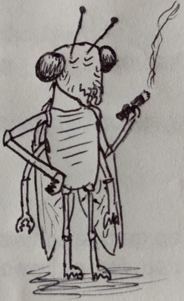 Old Dada (OD): Cigars, mostly. Always enjoined a good Cohiba. President Grant first introduced me to the pleasures of a good smoke back in (18)68. You remember “Sam” Grant, don’t you? He’s the general who put the “Lost” in “The Lost Cause.” Ha ha. But I come from tough Irish stock, originally. I think my people — sorry, shouldn’t be so insensitive — I think my fellow bugs came over on the Mayflower and eventually settled in cotton country. Much milder weather. The ground hardly freezes at all. Easier to survive there than in, say, Massachusetts or New Hampshire. Winters are a fucking nightmare up there.