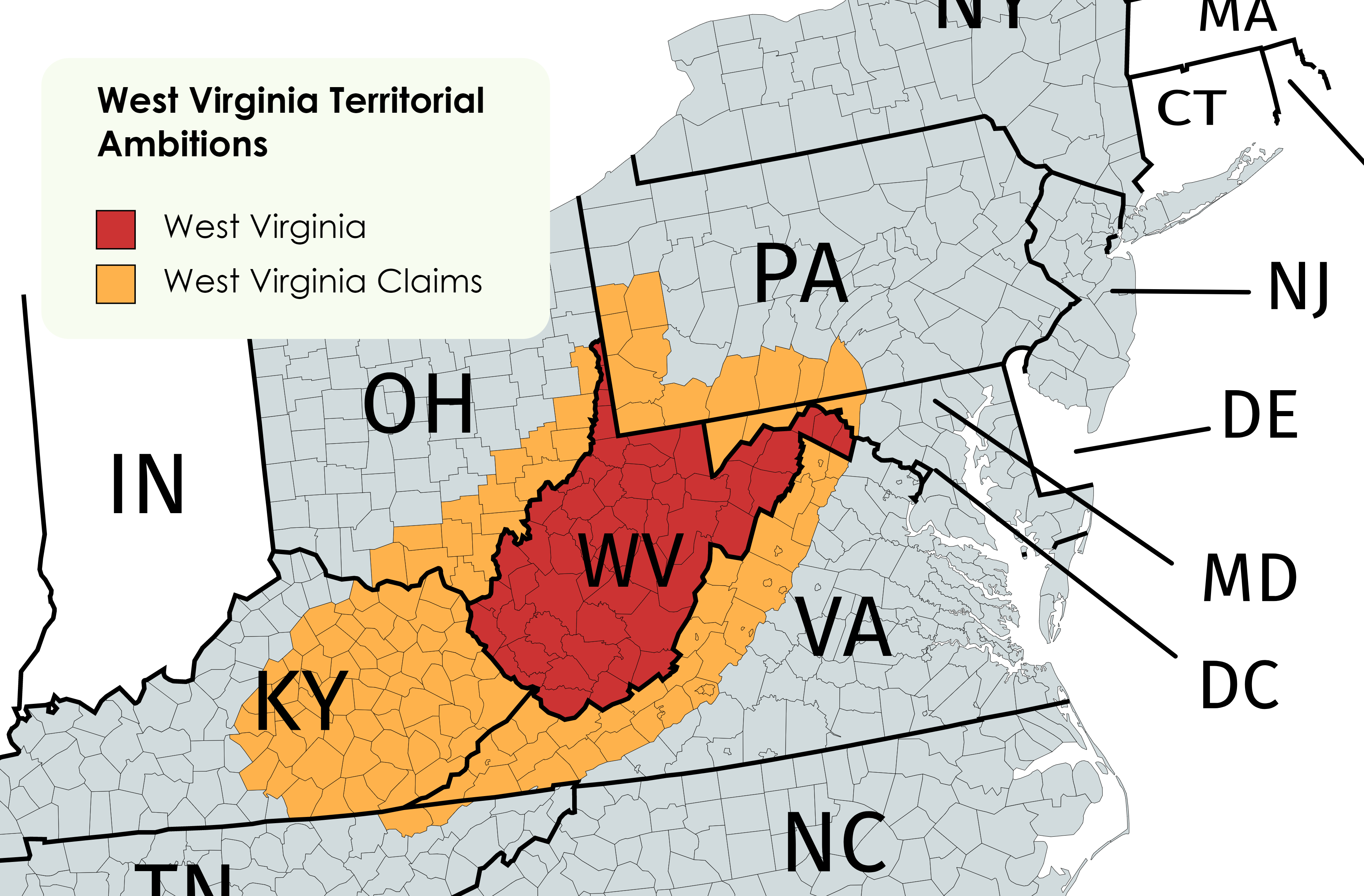 “Then we thought federal lawsuits against each of the surrounding states alleging human-rights abuses in specific counties might set up a way for us to take over. But, of course, West Virginia doesn’t exactly have the greatest history in that department, either,” the source said.